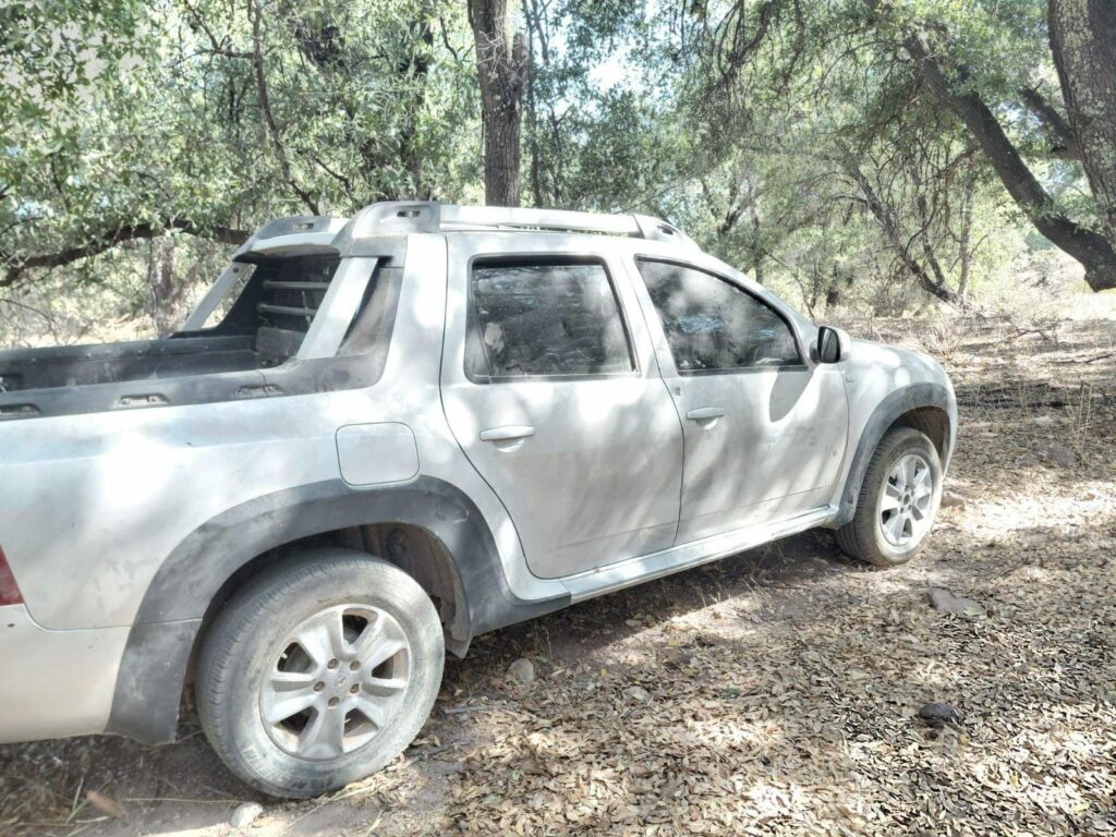 Uno de los automotores, es una pick up de la marca Renault, línea Oroch, modelo 2019, de color gris, con placas de circulación del estado de Chihuahua.