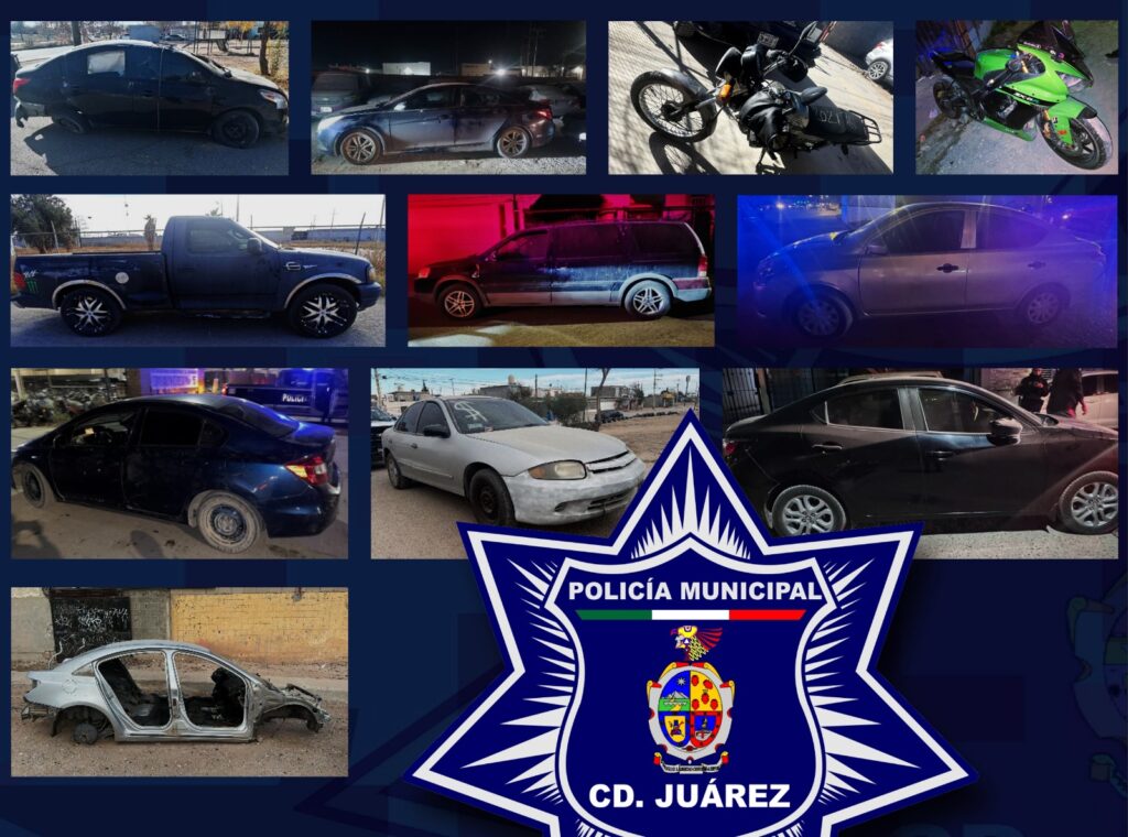 CD. JUAREZ, CHIH.-Elementos de la Secretaría de Seguridad Pública Municipal, adscritos a los distintos distritos policiales, lograron la recuperación de 12 vehículos que cuentan con reporte de robo de días o meses atrás.
