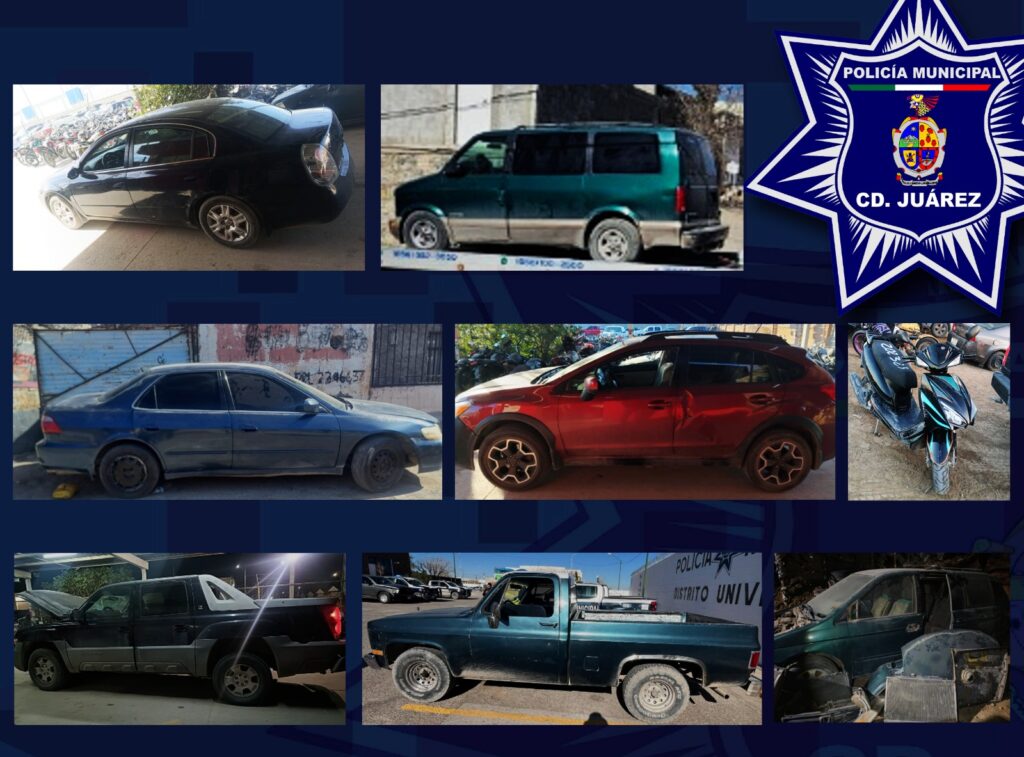 CD. JUAREZ, CHIH.- Elementos de la Secretaría de Seguridad Pública Municipal, adscritos a los distintos distritos policiales, lograron la recuperación de 10 vehículos que cuentan con reporte de robo de días o meses atrás.