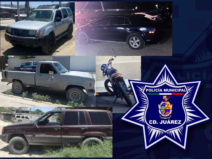 CD. JUAREZ, CHIH.- Elementos de la Secretaría de Seguridad Pública Municipal, adscritos a los distintos distritos policiales, durante este fin de semana lograron la recuperación de seis vehículos que cuentan con reporte de robo de días o meses atrás. Lo anterior como resultado de un operativo especial implementado en diversos sectores de la ciudad.