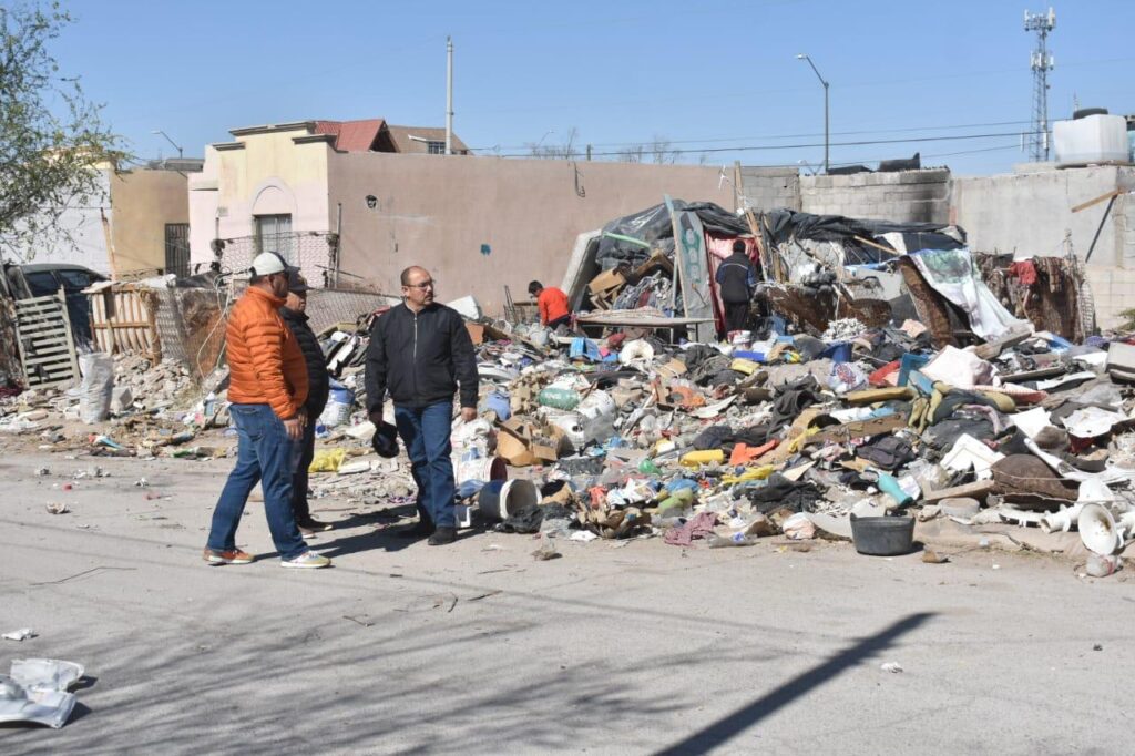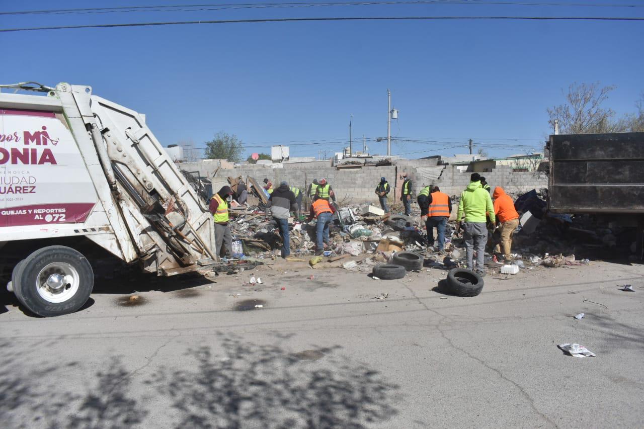 CD. JUAREZ, CHIH.-Como parte del programa de Reordenamiento Urbano que lleva a cabo la Administración Municipal 2024-2027, este miércoles se atendió un predio municipal ubicado en el cruce de las calles Rivera Lerma y Rivera Cruz del fraccionamiento Riberas del Bravo.