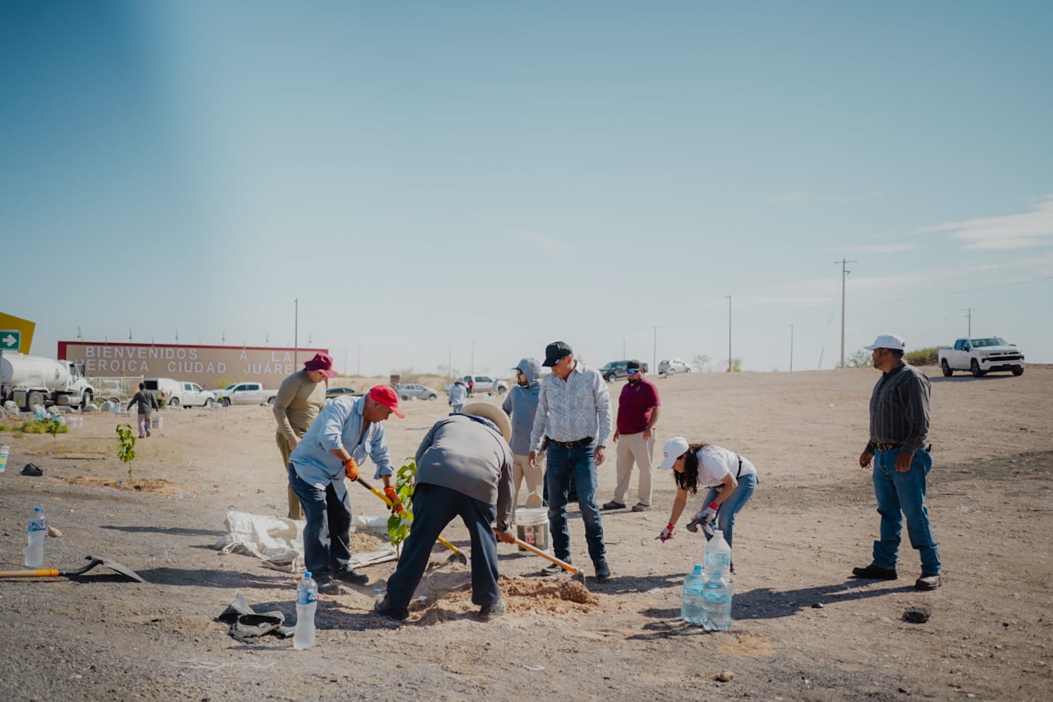 Durante la mañana del jueves, se plantaron árboles en el área del Umbral del Milenio, con el fin de cambiar el aspecto de la entrada a la frontera.