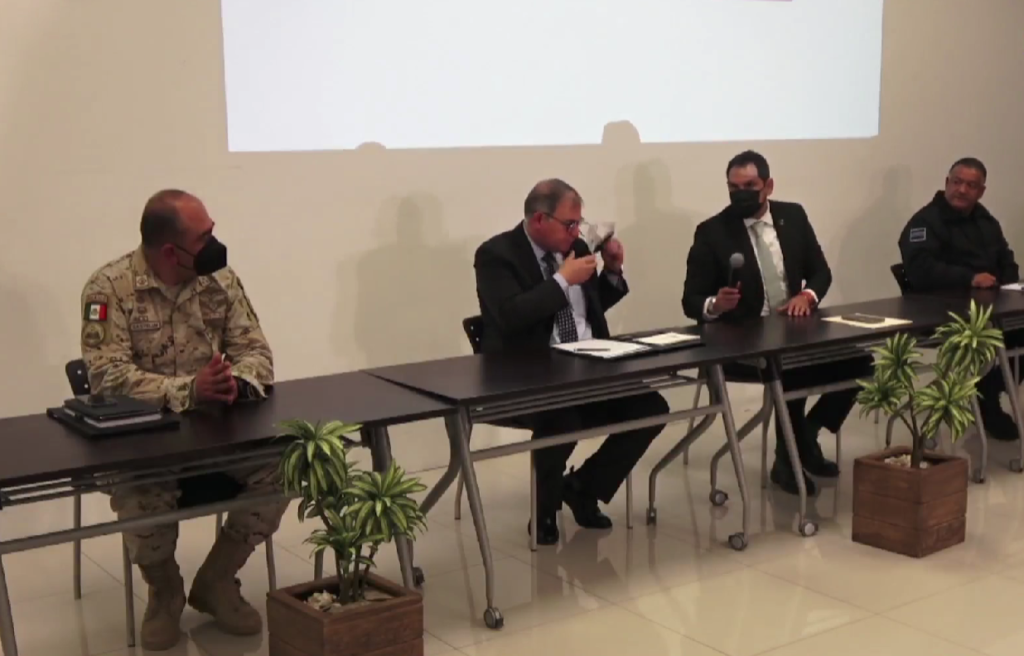 En compañía al Fiscal General; al secretario de Seguridad Pública del Estado; estuvieron presentes el secretario de seguridad pública municipal de Juárez, Omar Muñoz Morales; Marcos Gastelum, representante de la SEDENA y Victorianos Fernández Mondragón, coordinador estatal de la Guardia Nacional, quien aseguró que hay una acción objetiva a través de la presencia de la Guardia Nacional y la SEDENA y que se continúa con los operativos de seguridad tales como Juntos por Juárez y con detenciones.