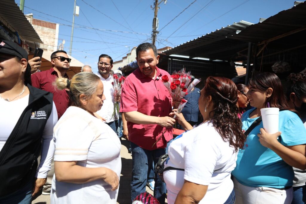 CD. JUAREZ, CHIH.-Este día, el Presidente Municipal, Cruz Pérez Cuéllar, regaló rosas a mamás en la Zona Centro con motivo del Día de las Madres.