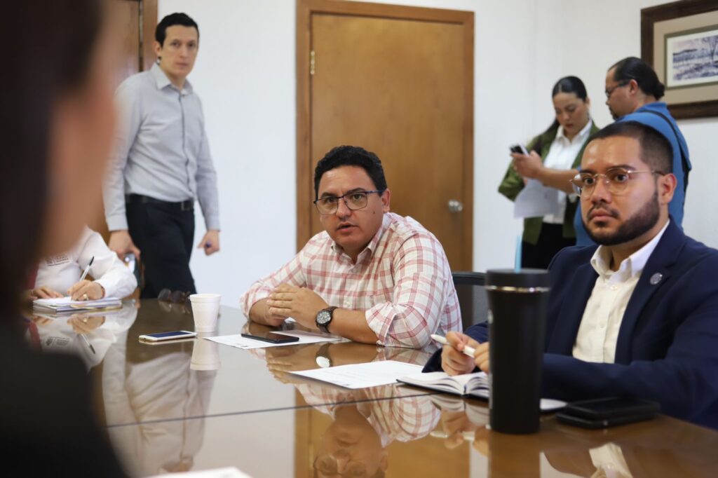 El coordinador de la Comisión, regidor Jorge Marcial Bueno Quiroz y las regidoras Alma Edith Arredondo Salinas y Tania Maldonado Garduño, se reunieron con el director de Derechos Humanos del municipio, Santiago González Reyes.