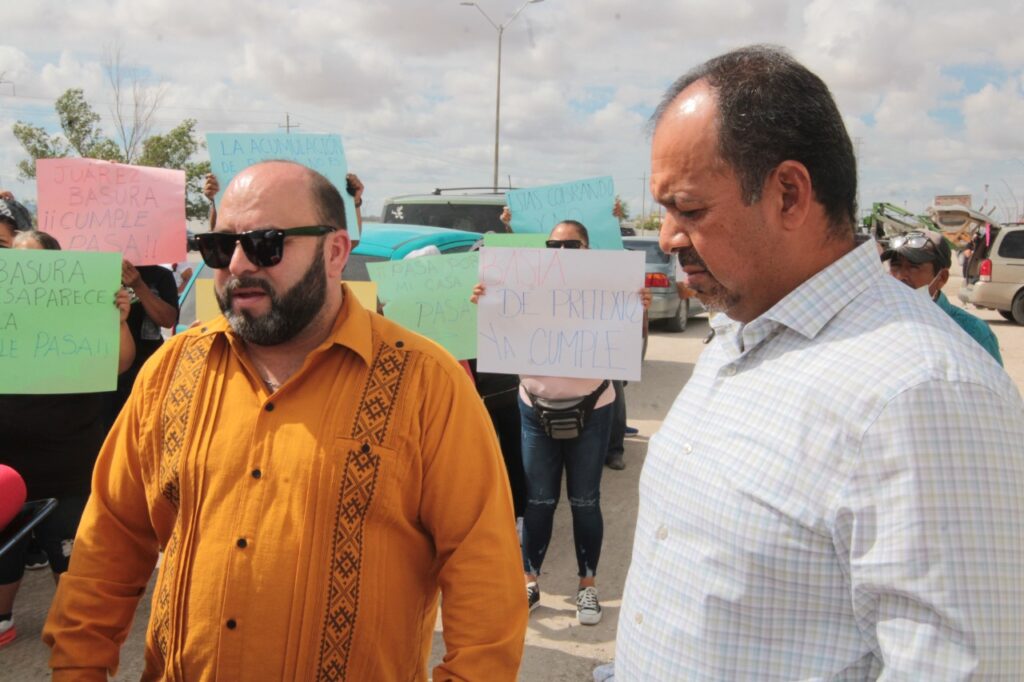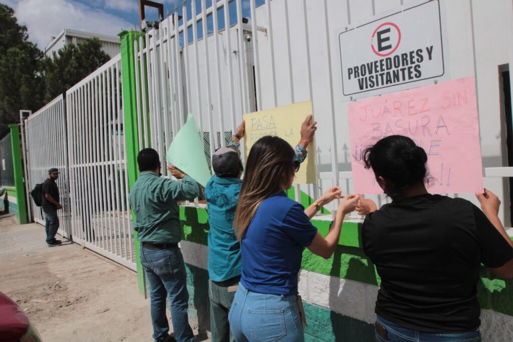 CD. JUAREZ, CHIH.-En protesta por las omisiones en el servicio de recolección de basura en la ciudad, vecinos de distintas colonias del poniente y sur oriente de la ciudad encabezados por los regidores Pedro Matus Peña y Héctor Hugo Avitia, se manifestaron este día en las instalaciones de la empresa Promotora Ambiental de la Laguna (PASA) ubicada en la carretera Panamericana.