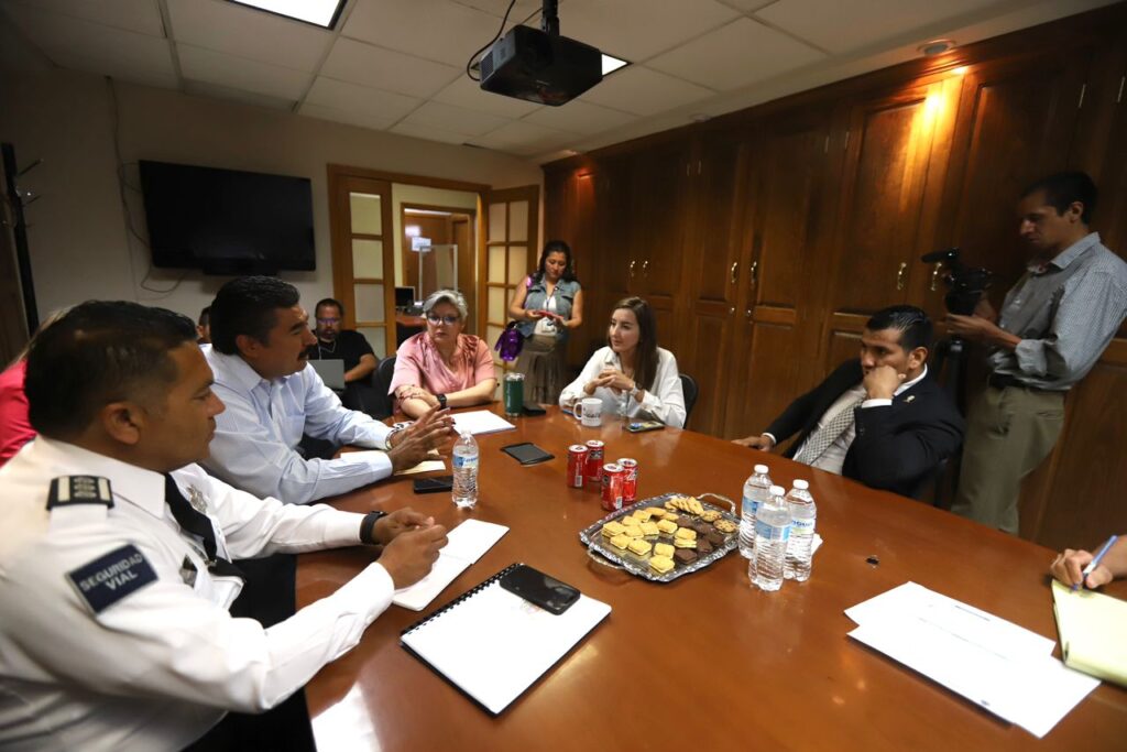 La coordinadora de la Comisión, Mireya Porras Armendáriz, junto con sus homólogos, Amparo Beltrán Ceballos y Antonio Domínguez Alderete tuvieron una junta con el coordinador general de Seguridad Vial, César Alberto Tapia Martínez y el director Operativo, Víctor Daniel Mejía.