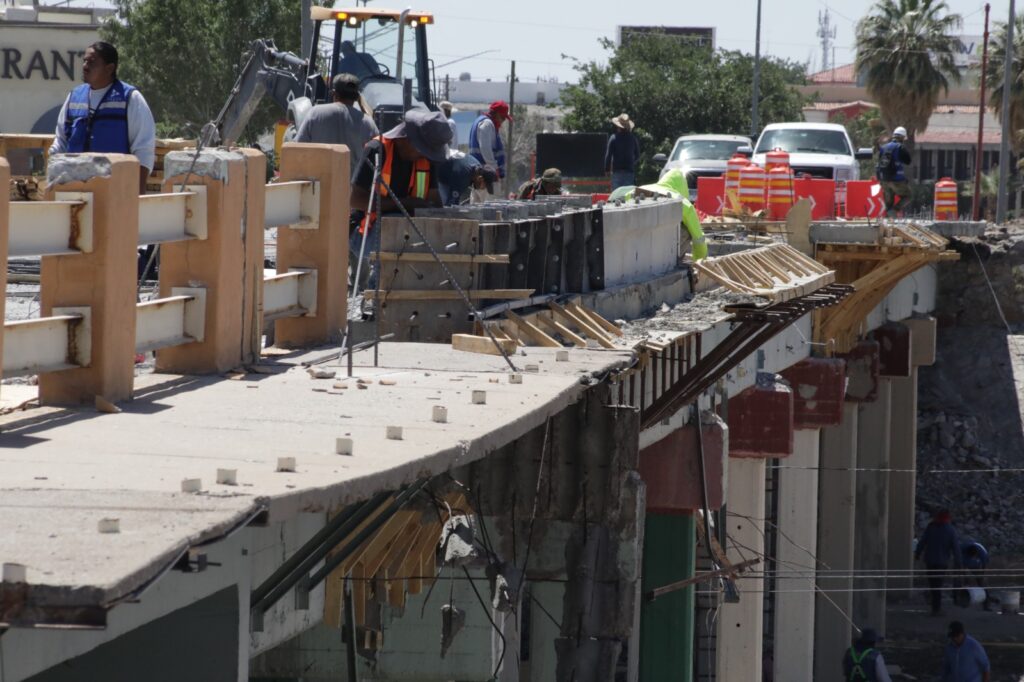 Además se colocaron las trabes en el puente oriente y el colado de 650 metros cuadrados de losa de concreto, así como el inicio de la demolición de trabes en el puente oriente, en la sección de la gasa.