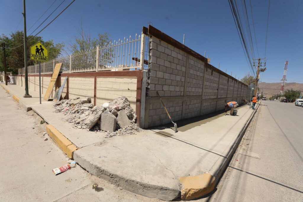 CD. JUAREZ, CHIH.- La Dirección General de Obras Públicas trabaja en la rehabilitación de una barda perimetral de la Escuela Primaria Insurgentes, ubicada entre la avenida 16 de Septiembre y la calle Miguel Hidalgo en la colonia Insurgentes.