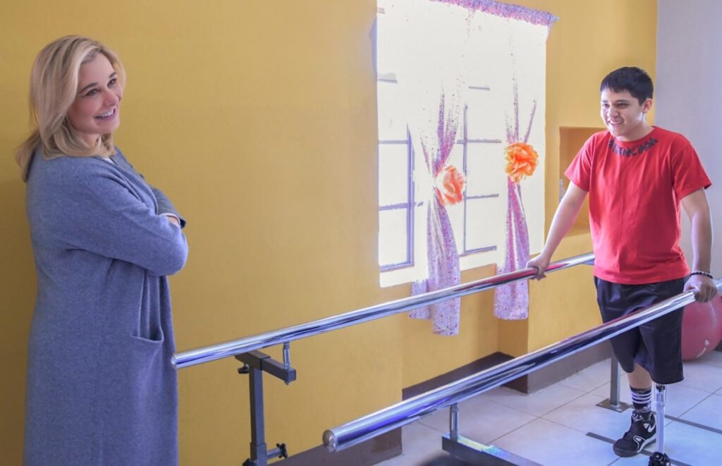Durante su visita a esta localidad entregó prótesis y sillas de ruedas, a niños y jóvenes en situación de vulnerabilidad