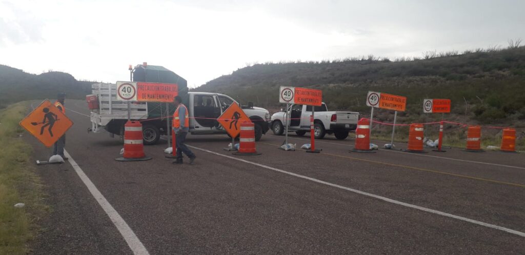 Los trabajos de reparación de este tramo consisten en el relleno de las fallas con material pétreo, así como la reconstrucción de la superficie de rodamiento, obras que están en proceso desde el lunes, con apoyo y coordinación de personal operativo de las presidencias municipales de Camargo y Ojinaga.