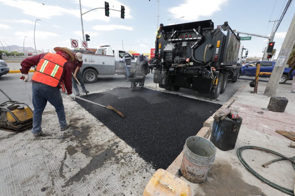 CD. JUAREZ, CHIH.- Personal de la Dirección General de Obras Públicas inició los trabajos de reparación de losas en la intersección de la avenida Tecnológico y la Teófilo Borunda, a fin de mejorar las condiciones de movilidad y brindar seguridad a los miles de guiadores que diariamente transitan por la zona.