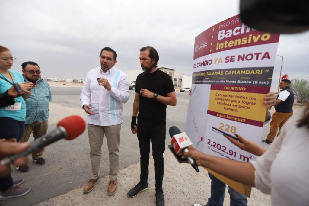 CD. JUAREZ, CHIH.- El Presidente Municipal, Cruz Pérez Cuéllar, visitó el suroriente de la ciudad para hacer entrega de los trabajos del Programa de Bacheo Intensivo que implementó la Dirección General de Obras Públicas en el bulevar Manuel Talamás Camandari.
