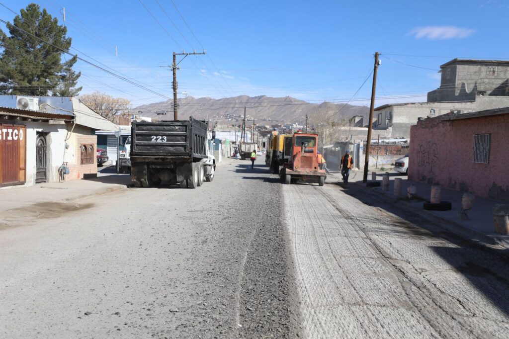 CD. JUAREZ, CHIH.- Como parte del proceso de rehabilitación de la calle Magnesio, la Dirección General de Obras Públicas comenzó con la colocación de carpeta asfáltica en dicha vialidad, con el fin de mejorar las condiciones de la misma.