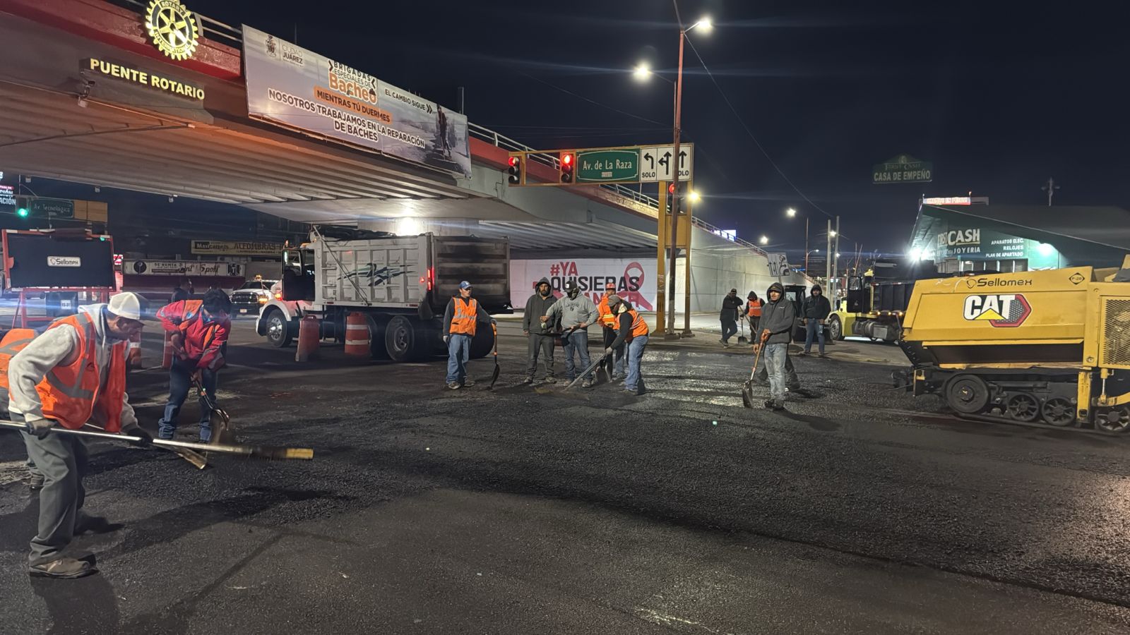CD. JUAREZ, CHIH.- Con actividad durante las noches, la Dirección General de Obras Públicas trabajó en la rehabilitación del crucero que converge en las avenidas De la Raza y Tecnológico, como parte del programa de Mejoramiento de Vialidades.