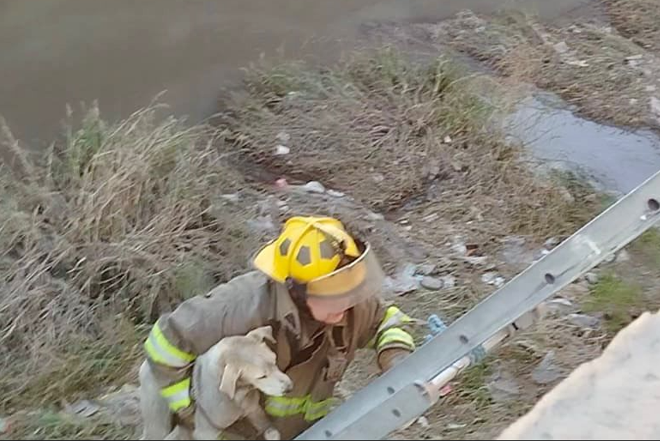 CD. JUAREZ, CHIH.-Elementos del Departamento de Bomberos rescataron este fin de semana un perrito que se encontraba atrapado dentro del dren 2A, cerca de la intersección del boulevard Teófilo Borunda y la avenida De los Bosques.