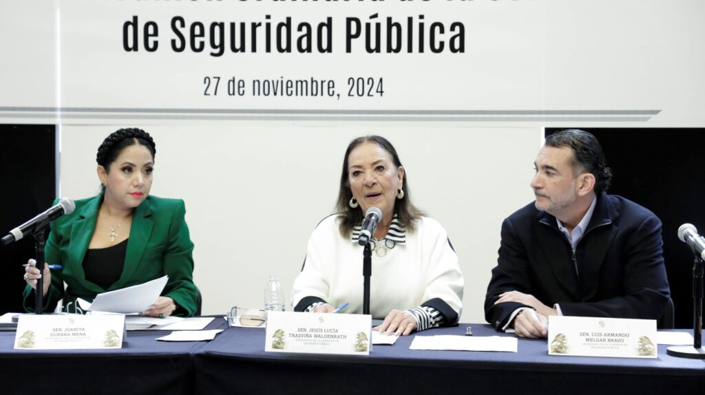 CIUDAD DE MEXICO.-La Comisión de Seguridad Pública, presidida por la senadora Lucía Trasviña Waldenrath, aprobó nueve dictámenes con puntos de acuerdo para exhortar a diferentes autoridades a implementar estrategias y planes en materia de seguridad, protección civil, prevención del delito, entre otros.