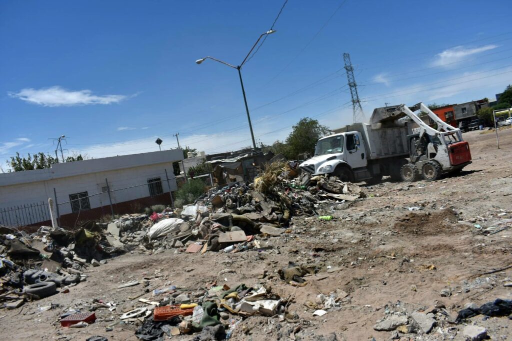CD. JUAREZ, CHIH.- En respuesta a una solicitud de los ciudadanos, personal de la Dirección de Limpia trabaja en la limpieza de un predio baldío ubicado en la colonia Lucio Cabañas.