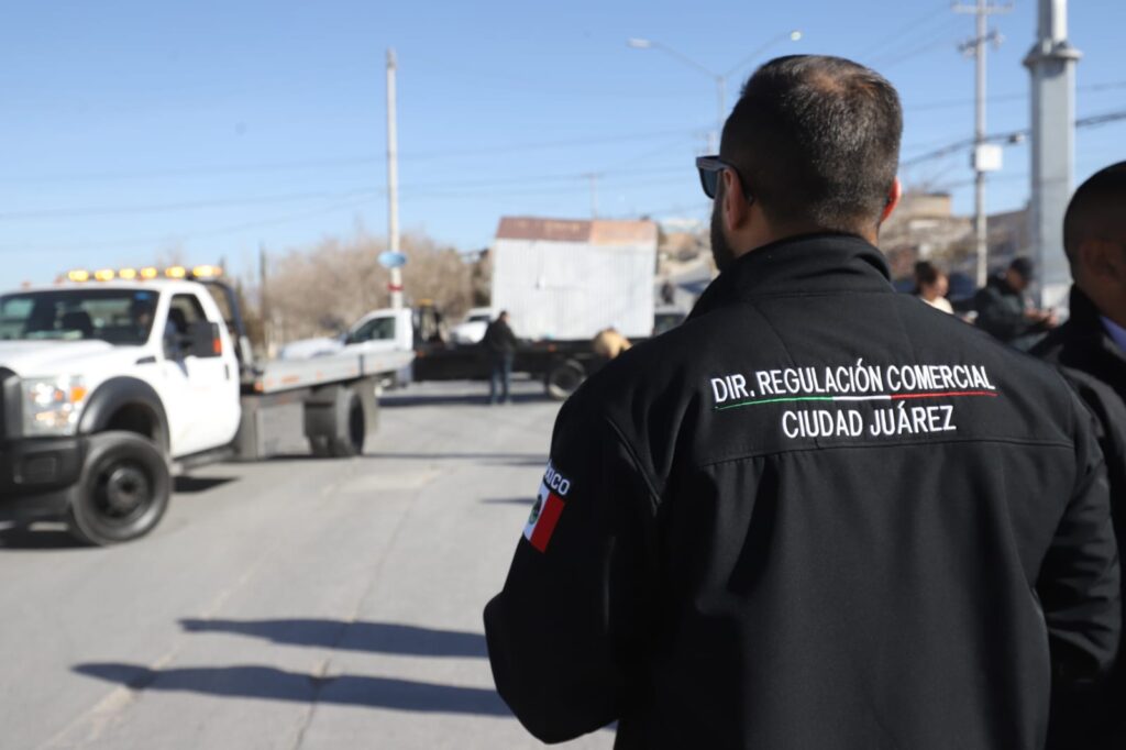 CD. JUAREZ, CHIH.- Como parte del programa permanente de Reordenamiento Urbano, empleados de distintas dependencias municipales llevaron a cabo un operativo en el que retiraron puestos de lámina instalados en un espacio público en la colonia Ampliación Fronteriza.