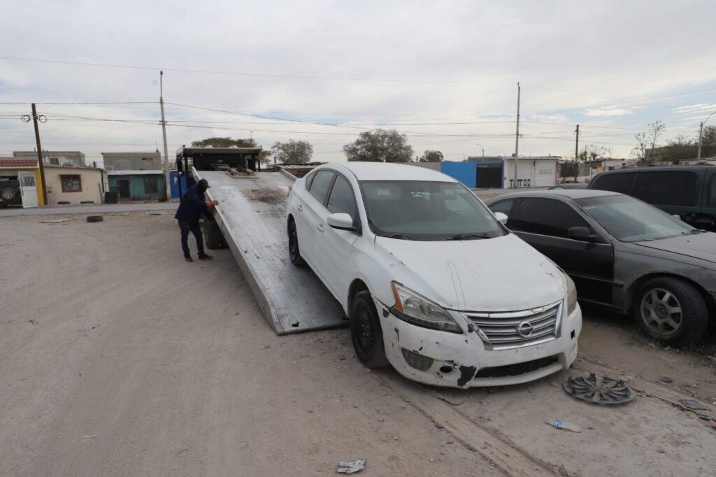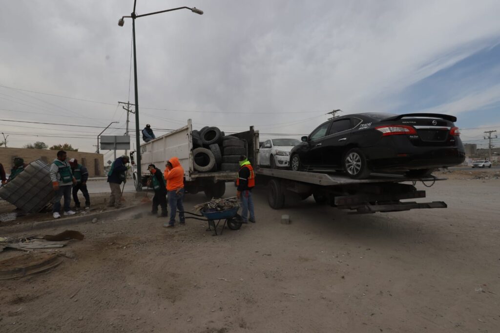 CD. JUAREZ, CHIH.-A través del Operativo de Reordenamiento Urbano, empleados de varias direcciones municipales retiraron este día vehículos que obstruían la prolongación de la avenida Santiago Troncoso.