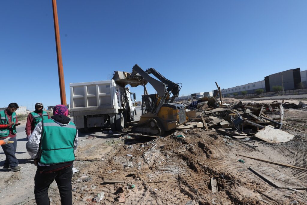 CD. JUAREZ, CHIH.- Como parte del programa permanente de Reordenamiento Urbano, personal de distintas dependencias municipales llevó a cabo este viernes el retiro de una estructura que operaba como desponchadora, instalada sobre el camellón central de la prolongación de la avenida De las Torres.
