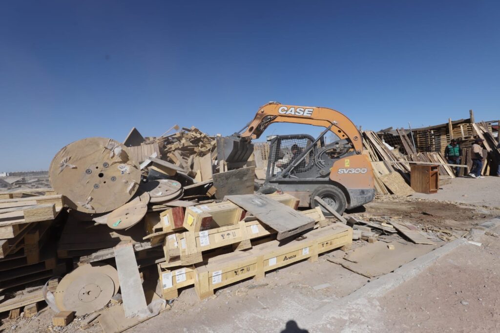 CD. JUAREZ, CHIH.- Como parte del programa permanente de Reordenamiento Urbano del Gobierno Municipal, diversas dependencias realizaron un operativo para retirar un negocio que operaba de manera irregular en un espacio público, donde se detectó invasión de la vía, acumulación de residuos industriales y riesgos de seguridad.