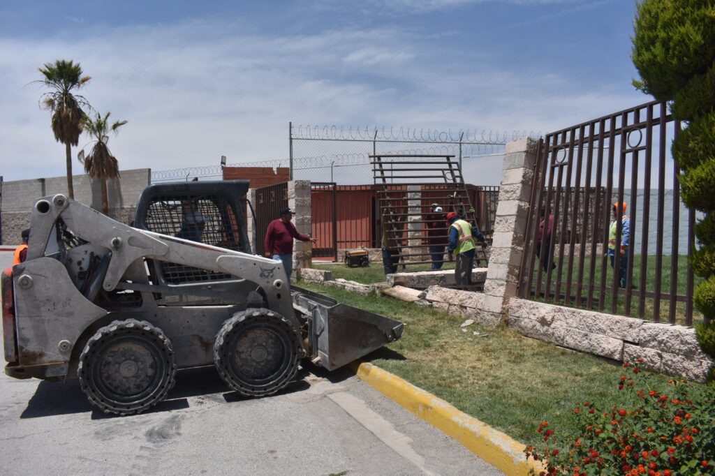 CD. JUAREZ, CHIH.-Como parte del Operativo de Reordenamiento Urbano, el Gobierno Municipal, a través de distintas dependencias, llevó a cabo la demolición de columnas y rejas en un colegio de la ciudad, debido a que estaban obstruyendo la vía pública.