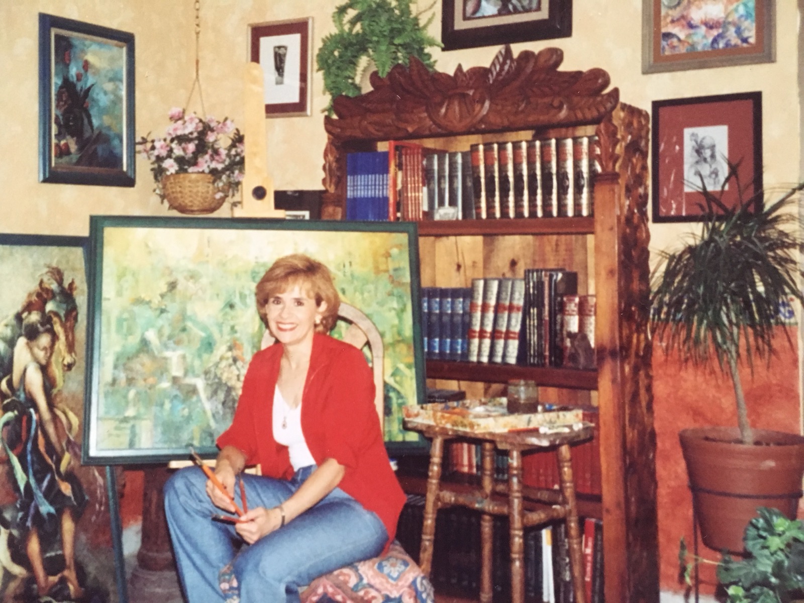 La música es para Adela indispensable, siempre la escucha y la acompaña, le gustó mucho la idea de hacer una pintura de mujeres en una fiesta transformándose en instrumentos musicales para crear más fantasía.