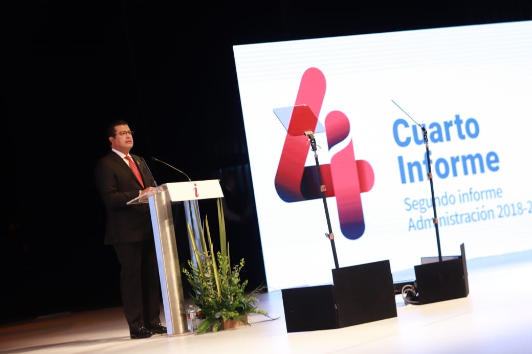Por espacio de 120 minutos aproximadamente, el Cuarto Informe se dividió en cinco gabinetes, siendo éstos: Seguridad Pública, Administrativo, Servicios e Infraestructura, Económico, Social y un apartado especial sobre Hechos Contra COVID-19.