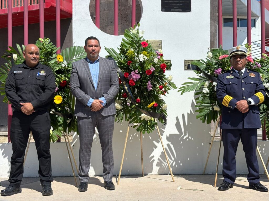 CD. JUAREZ, CHIH.- En el marco del 107 Aniversario del Día Nacional del Bombero, el Presidente Municipal, Cruz Pérez Cuéllar encabezó la colocación de una ofrenda floral, en memoria de los elementos caídos en el cumplimiento de su deber.