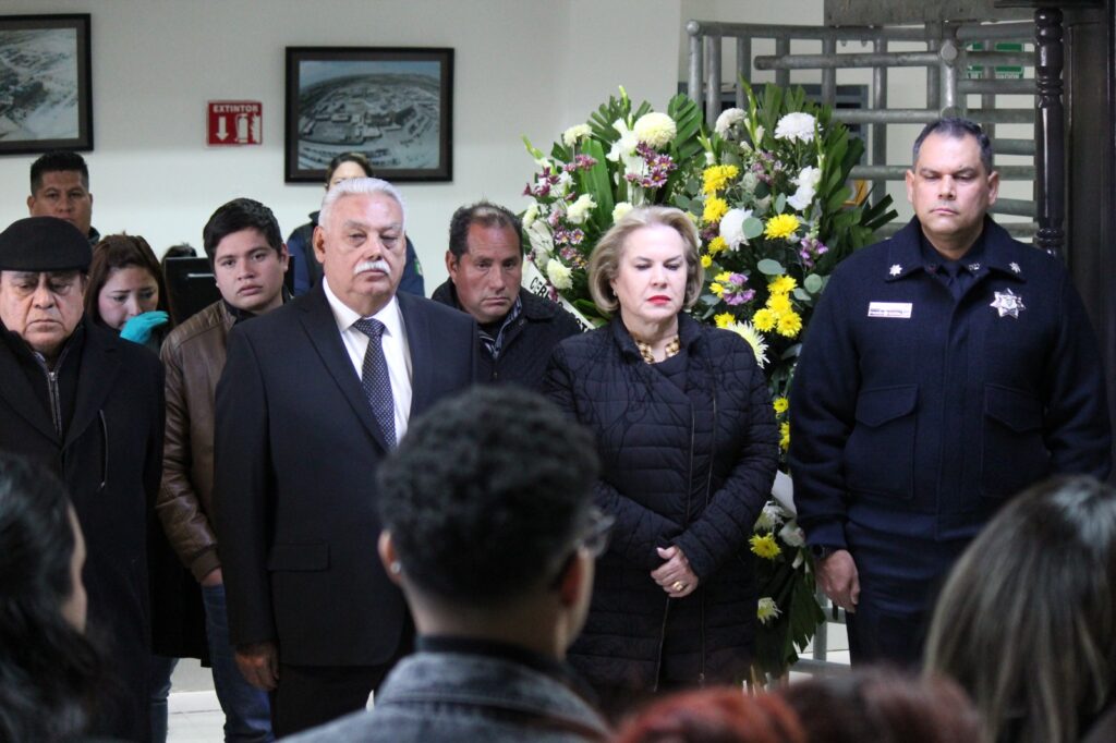 Como parte de la ceremonia cívica, las autoridades civiles y militares invitadas al evento, mandos y oficiales representantes del Sistema Penitenciario, y las familias de los elementos caídos, realizaron una guardia de honor junto al mural que reconoce su labor y sacrificio.