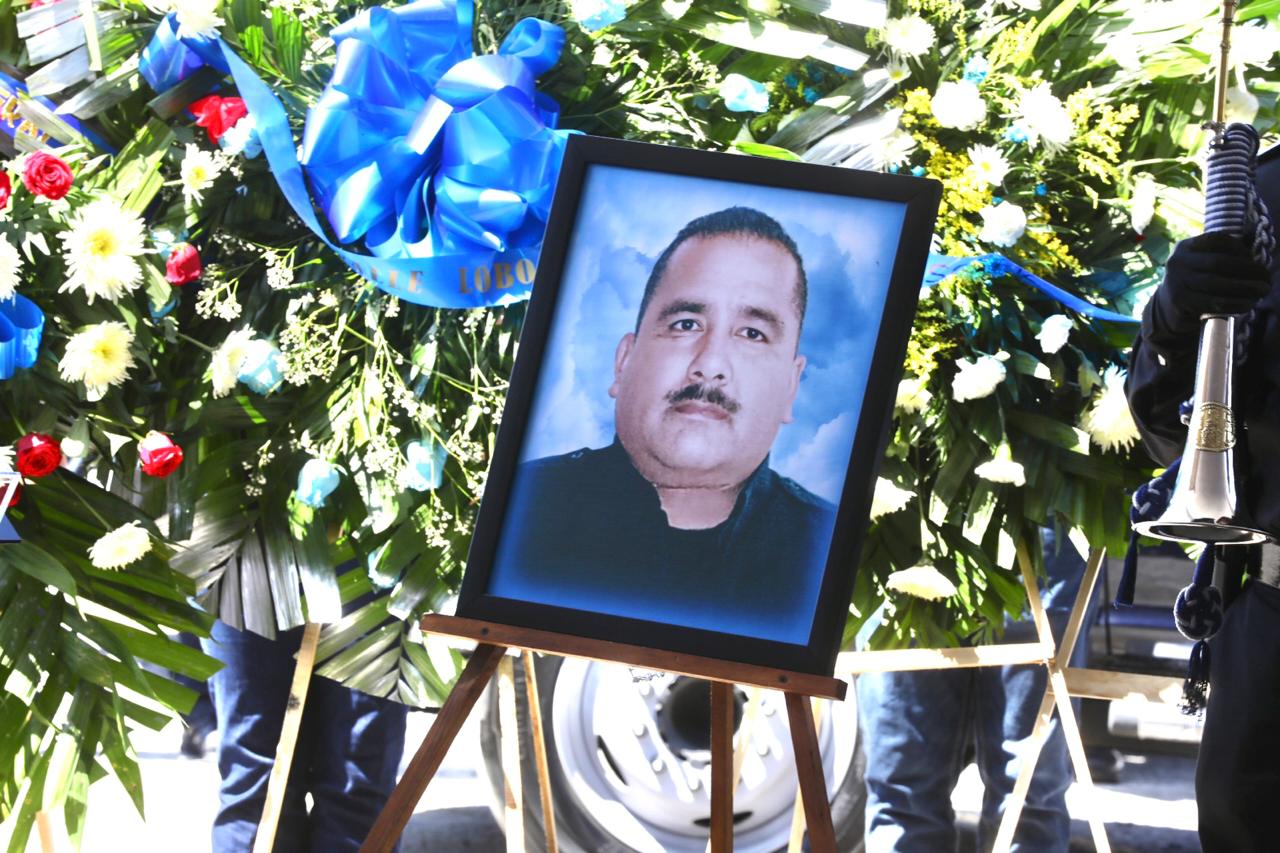 El Subinspector Víctor Sauceda Morales llamó al último pase de lista y el agrupamiento de fusileros del Grupo de Operaciones Especiales de la Secretaría de Seguridad Publica Municipal realizó el disparo de salvas, seguido del aullar de sirenas para su despedida.