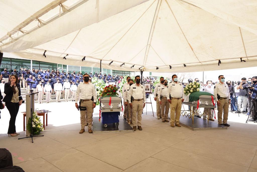 En Ciudad Juárez, la Fiscalía General del Estado de Chihuahua (FGE) Zona Norte, llevó a cabo a mediodía de este martes la ceremonia fúnebre del primer comandante de la Zona Noroeste, Alejandro Domínguez Cabriales; el oficial Gil Manuel Malo Solano y el comandante de Operaciones Tácticas, Ezequiel Emanuel Ortiz Fierro.