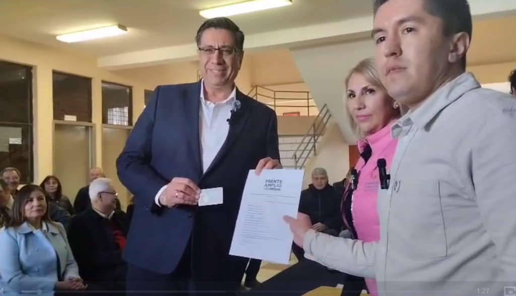 El actual recaudador de Rentas llegó a la escuela María Martínez donde se realizaron los registros, acompañado de su familia, militantes de su partido, diputados, regidores y funcionarios.