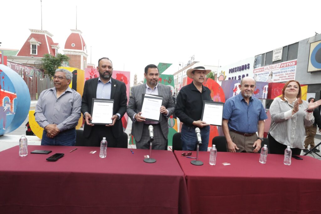 A la firma de la carta compromiso acudió Arturo Urquidi Astorga, director de Regulación Comercial del Municipio; el secretario del Ayuntamiento, Héctor Rafael Ortiz Orpinel; Gabriel Cantú, representante de la empresa Sounds; locatarios y empresarios del Centro y personal de la Administración Municipal.