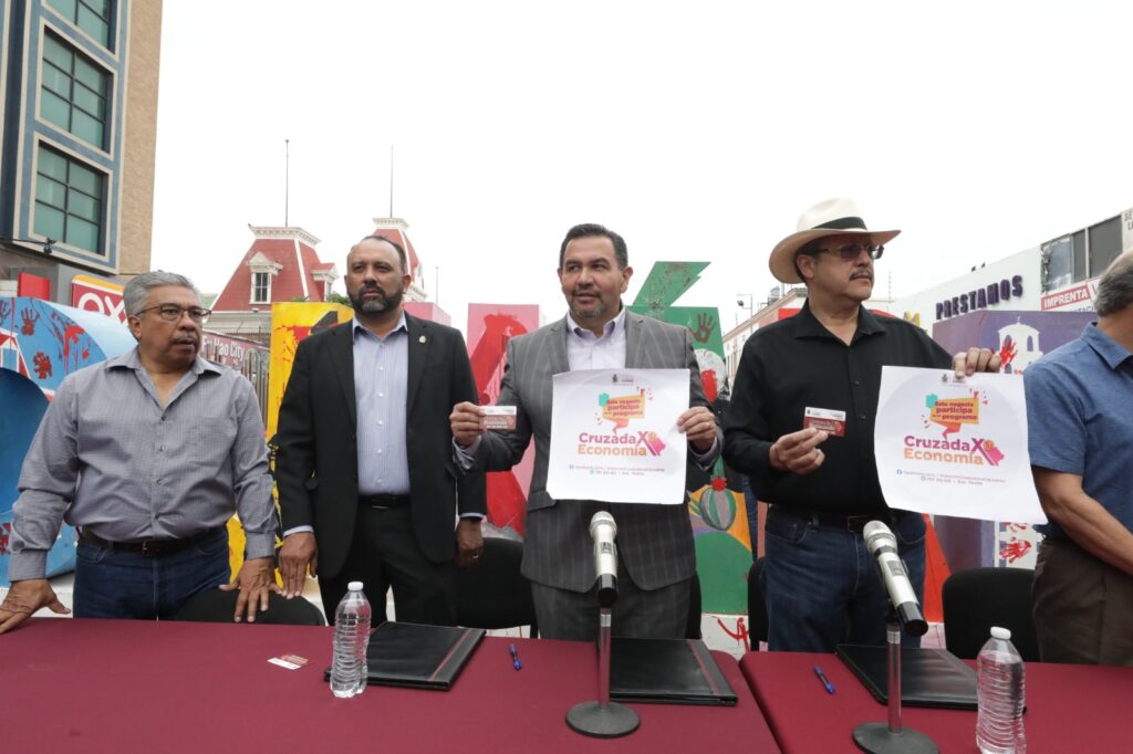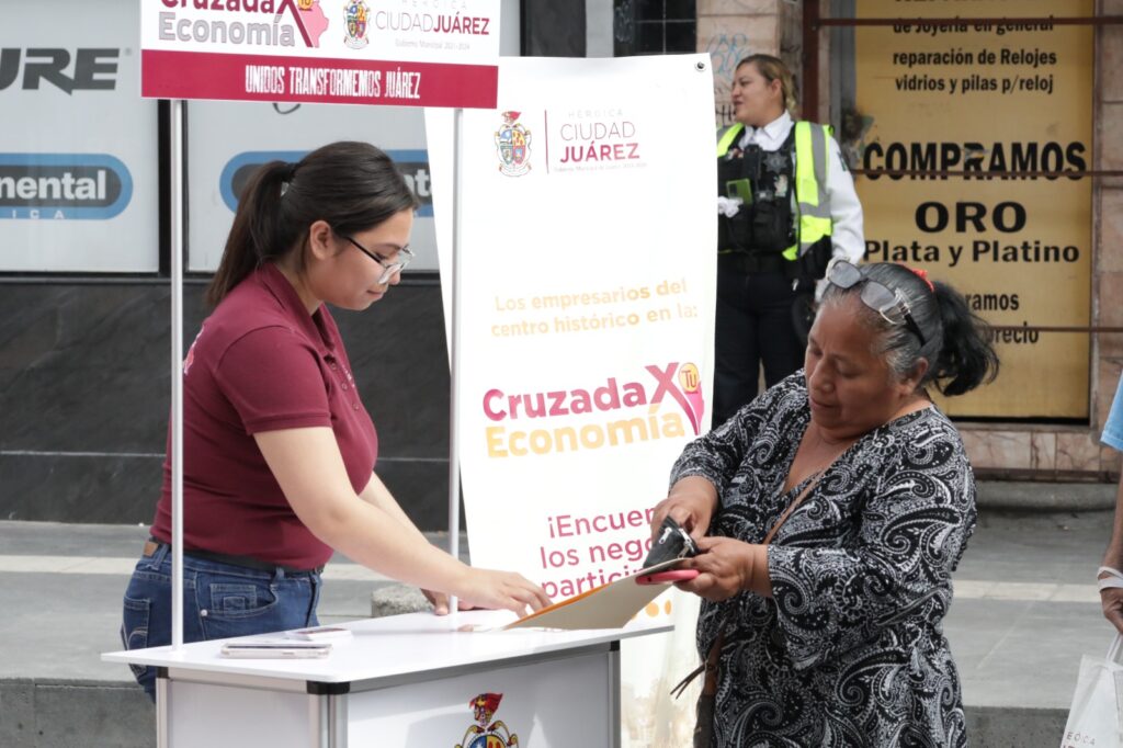 CD. JUAREZ, CHIH.- Con el fin de beneficiar la economía de los juarenses, este día comerciantes del Centro Histórico se adhirieron al programa Cruzada por tu Economía que promueve el Gobierno Municipal.
