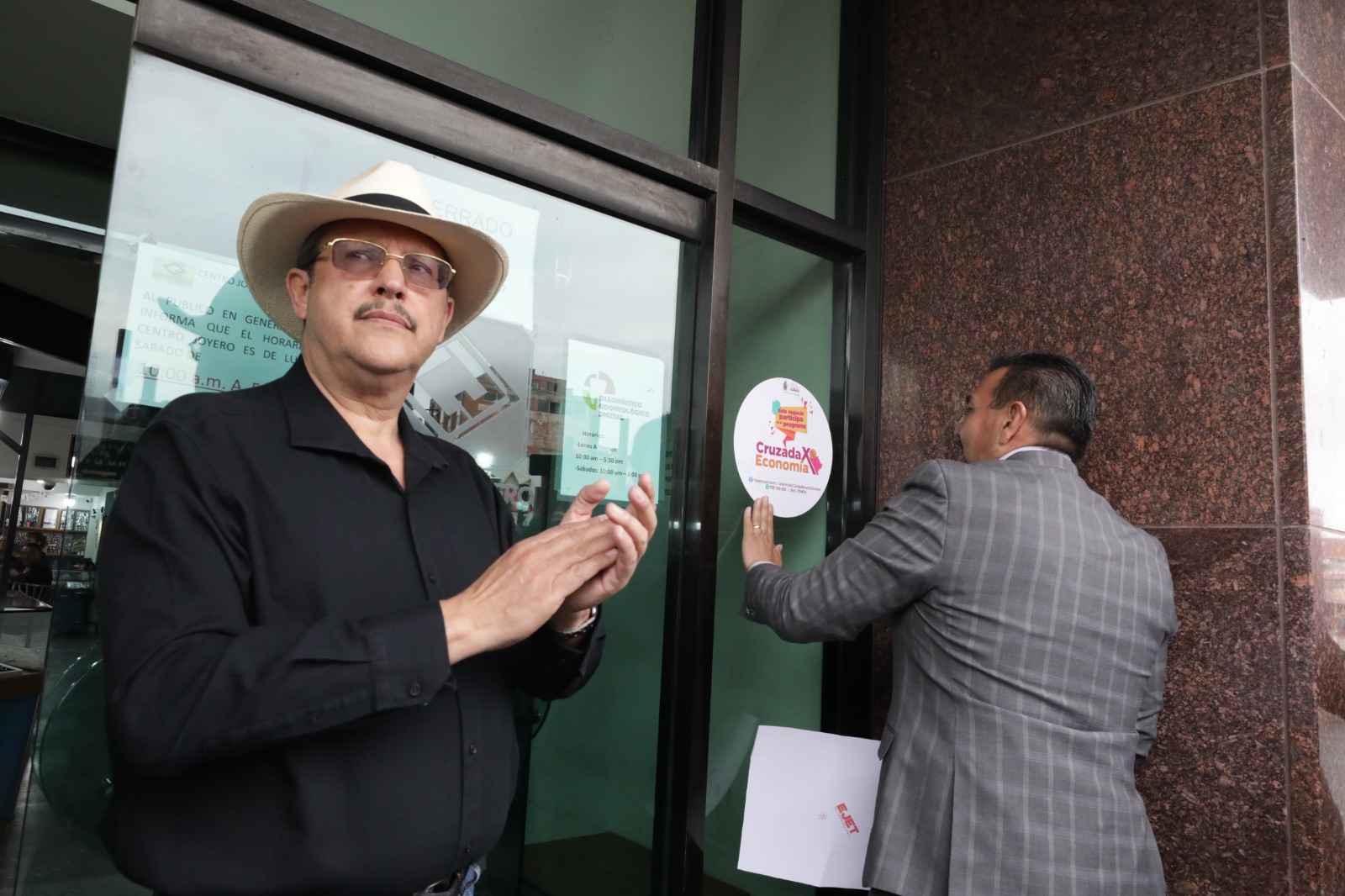 CD. JUAREZ, CHIH.- Con el fin de beneficiar la economía de los juarenses, este día comerciantes del Centro Histórico se adhirieron al programa Cruzada por tu Economía que promueve el Gobierno Municipal.