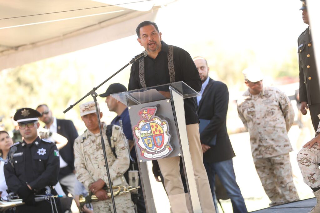 El Presidente Municipal reconoció durante el evento al Teniente Coronel Julián Leyzaola Pérez, por el trabajo desempeñado en esta ciudad, de marzo del 2011 a octubre 2013, ya que logró una importante disminución en los índices de inseguridad que se vivían en ese momento en esta frontera.