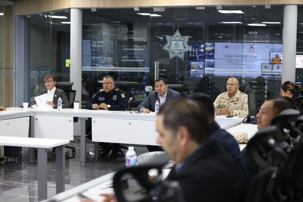 CD. JUAREZ, CHIH. El Gobierno Municipal, en colaboración con las diferentes corporaciones de seguridad de los tres órdenes de Gobierno, efectuaron este día la reunión de la Mesa de Coordinación para la Construcción de la Paz, que tuvo como sede el Centro de Emergencia y Respuesta Inmediata de la Secretaría de Seguridad Pública Municipal.