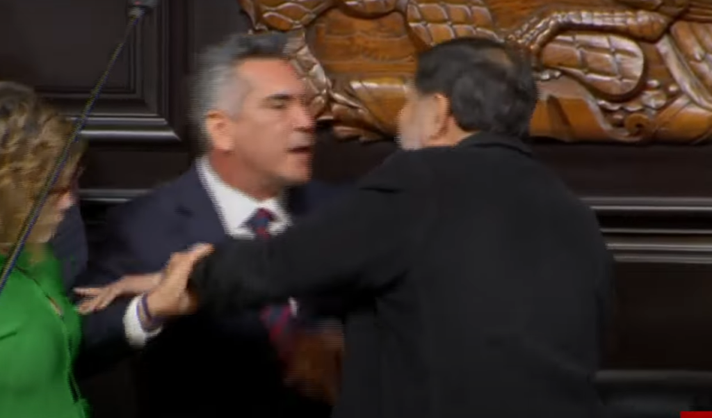 Mientras sonaba el Himno Nacional y se daba por concluido el segundo receso de la LXVI Legislatura, ambos legisladores comenzaron a empujarse frente a la Mesa Directiva. En la transmisión en vivo del Canal del Congreso quedaron registradas las escenas de jaloneos, manotazos y gritos.
