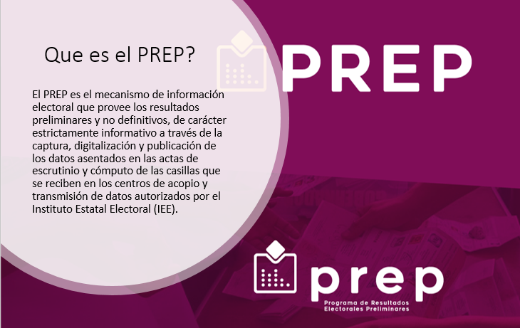 El PREP permite dar a conocer, en tiempo real a través de Internet, los resultados preliminares (no definitivos) de las elecciones la misma noche de la Jornada Electoral, con certeza y oportunidad y usando la tecnología más avanzada. Estos resultados provienen de la captura y publicación de los datos plasmados por las y los funcionarios de casilla en las actas de escrutinio y cómputo.
