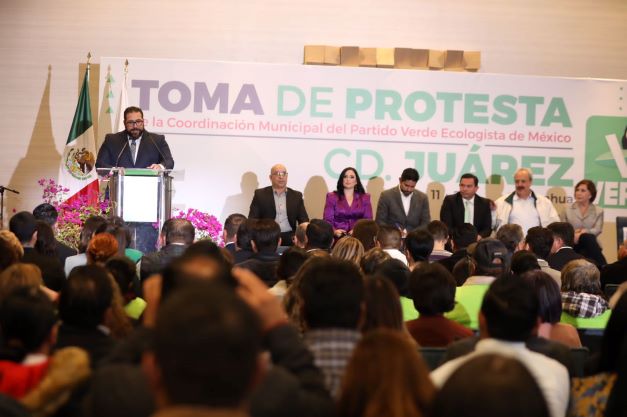 CD. JUAREZ, CHIH.-En el marco de la toma de protesta del Comité Ejecutivo Municipal del Partido Verde Ecologista de México en Ciudad Juárez, el Presidente Municipal, Cruz Pérez Cuéllar, acudió como invitado especial y reiteró que mantendrá las puertas abiertas para trabajar con aquellos grupos que tambien buscan continuar con la Cuarta Transformación que encabeza el Presidente de la República, Andres Manuel López Obrador.