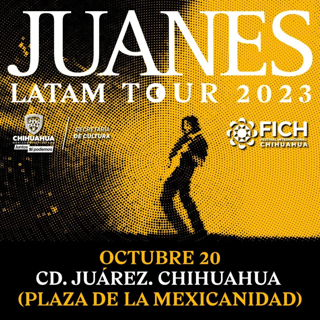 CD. JUAREZ, CHIH.- Como parte de la programación del Festival Internacional Chihuahua 2023 (FICH) que se tiene preparada para Ciudad Juárez, se llevará a cabo un magno concierto a cargo del artista colombiano Juanes el viernes 20 de octubre a partir de las 7 de la tarde en la Plaza de la Mexicanidad.