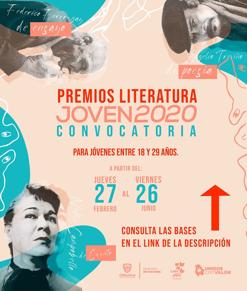 CHIHUAHUA, CHIH.- El Gobierno del Estado de Chihuahua, a través de la Secretaria de Cultura y con base en el Plan Estatal de Fomento al Libro, la Lectura y la Escritura “Leer Más”, reitera la invitación para concursar por los Premios de Literatura Joven 2020, cuya convocatoria cierra el próximo 26 de junio.