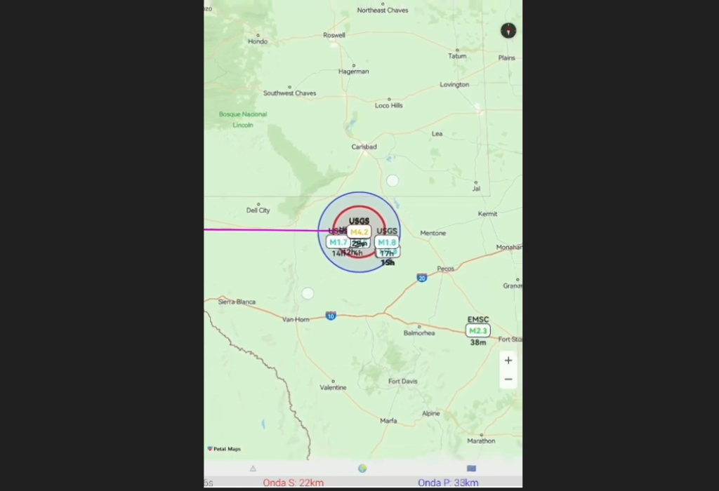 CD. JUAREZ, CHIH.-La Dirección General de Protección Civil informa que el día de hoy, aproximadamente a las 03:32 pm, se registró un sismo con una intensidad de 4.2 grados en la escala de Richter. El epicentro se ubicó a 51 kilómetros al sur de Whites City, Nuevo México, a una distancia aproximada de 211 kilómetros del Territorio Municipal.