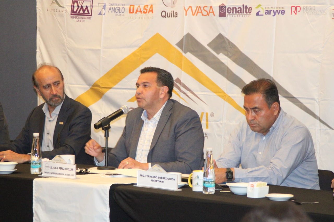 CD. JUAREZ, CHIH.- Invitan a Cruz Pérez Cuéllar, candidato a la alcaldía por Morena, en la Coalición Juntos Haremos Historia en Chihuahua, a platica con miembros de la Cámara Nacional de la Industria de Desarrollo y Promoción de Vivienda, (Canadevi) delegación Juárez a sesión para presentarle propuestas e inquietudes de su ramo.