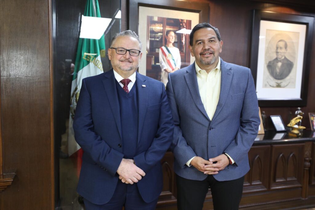 CD. JUAREZ, CHIH.- El Presidente Municipal, Cruz Pérez Cuéllar se reunió esta tarde con el Cónsul General de México en El Paso, Texas, Mauricio Ibarra Ponce de León, para hablar de diversos temas que tienen que ver con la posible llegada migrantes a esta frontera.