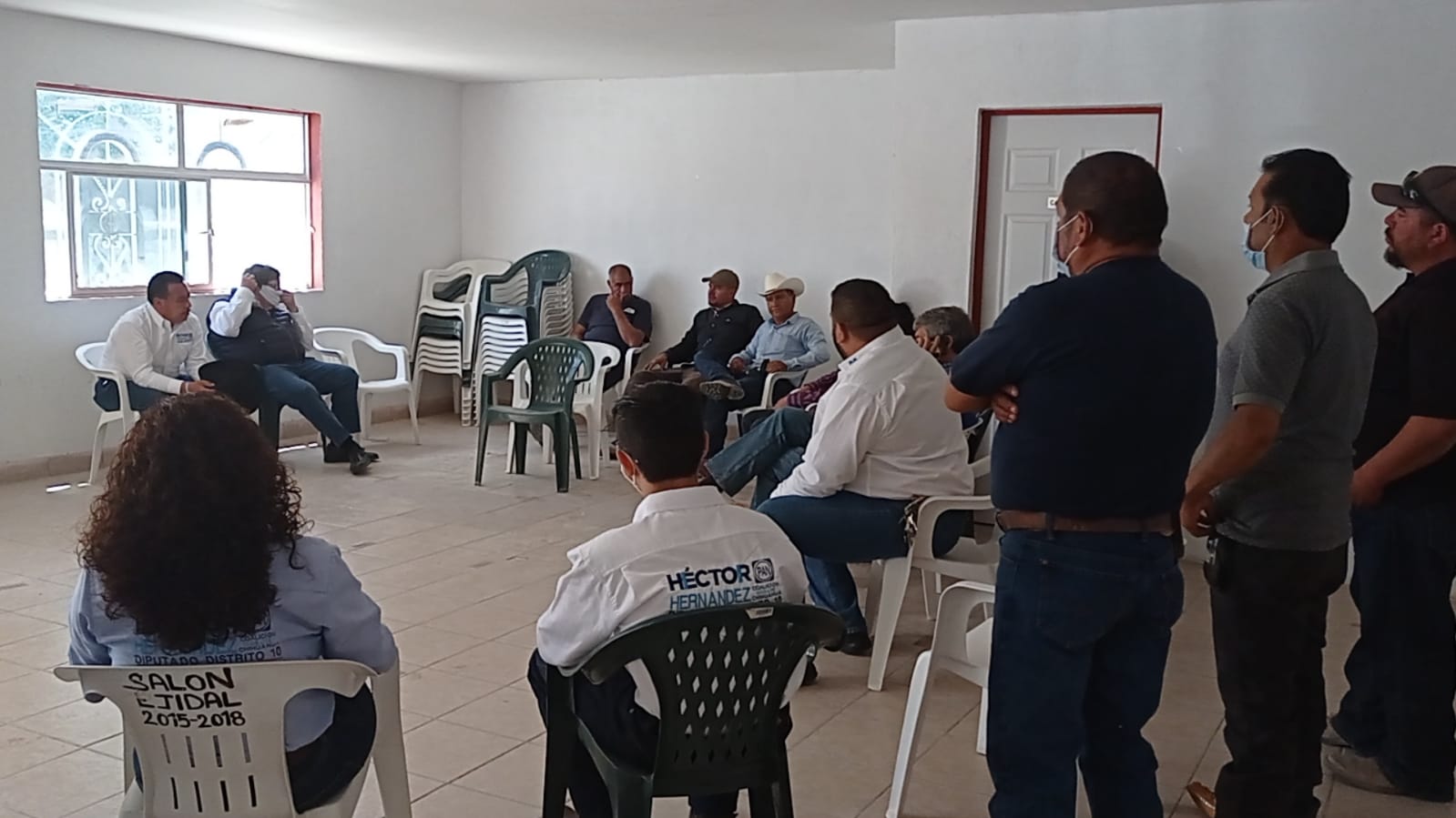CD. JUAREZ, CHIH.- Héctor Hernández García, candidato a diputado local por el distrito 10, del Partido Acción Nacional (PAN), sostuvo una reunión con autoridades y ejidatarios de Samalayuca, para escuchar sus necesidades y buscar soluciones. En el encuentro también estuvo presente el candidato a la alcaldía de Juárez, Javier González Mocken.