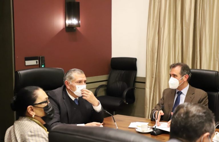 CIUDAD DE MEXICO.- El secretario de Gobernación, Adán Augusto López Hernández, la secretaria de Seguridad y Protección Ciudadana, Rosa Icela Rodríguez Velázquez, y el consejero presidente del Instituto Nacional Electoral (INE), Lorenzo Córdova Vianello, sostuvieron un encuentro para definir la Estrategia de Protección en el Contexto Electoral 2022.