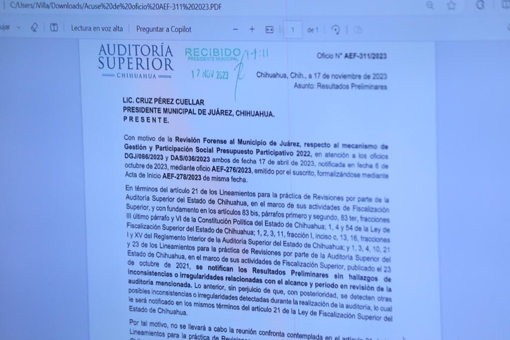 Por eso, adicionalmente, se presentaron denuncias administrativas en contra de Pérez Cuéllar, en la Auditoría Superior del Estado, la Secretaría de la Función Pública y la Contraloría del Municipio de Juárez.